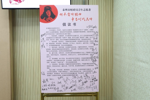 第四个环节为“见贤思齐”,通过现场签名发出“传承雷锋精神,争当时代先锋”倡议,号召全市财政系统青年干部继承和发扬雷锋同志不怕吃苦的“老黄牛”精神、好学上进的“拓荒牛”精神、全心为民的“孺子牛”精神,争当新时代雷锋精神的宣传者、维护者和践行者。