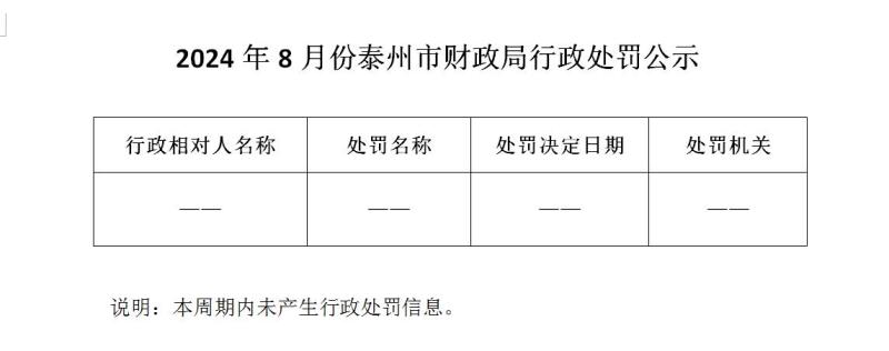 2024年8月份泰州市财政局行政处罚公示