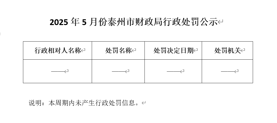 2025年5月份泰州市财政局行政处罚公示